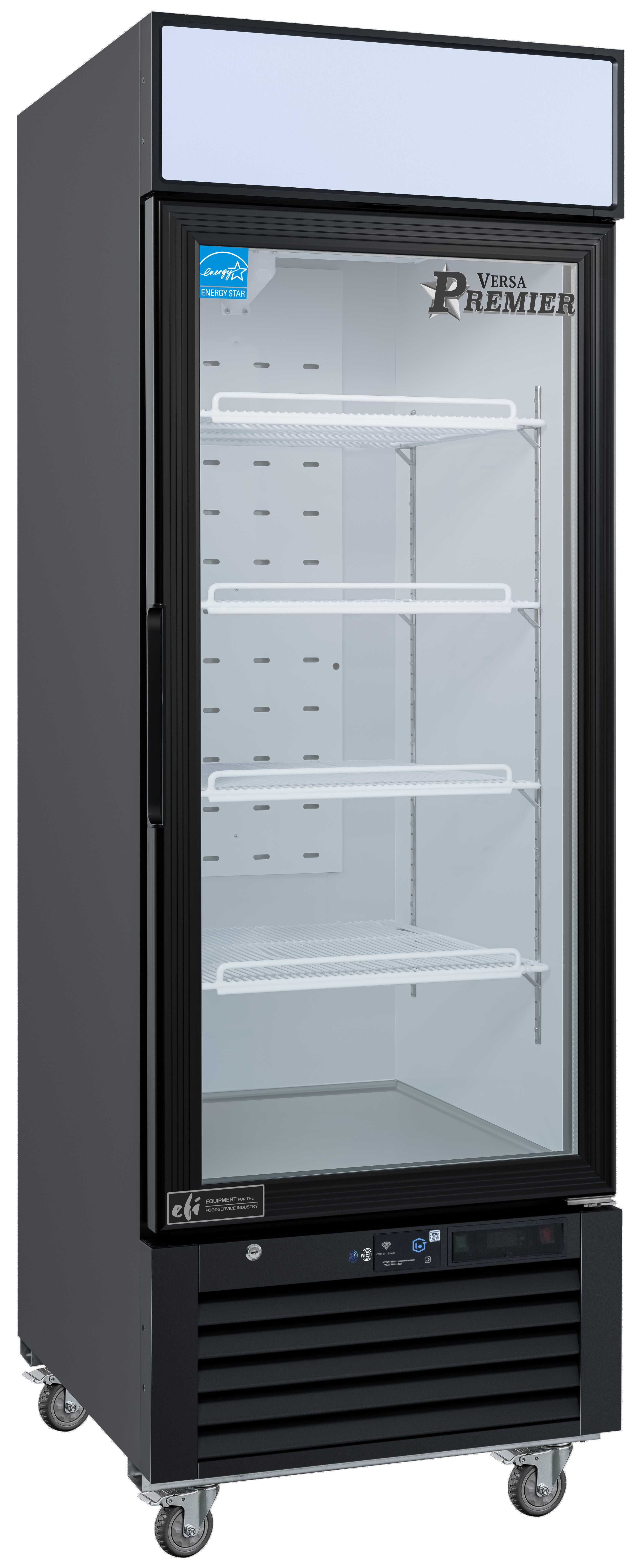 - Anti-fog dual-pane tempered glass doors with magnetic gaskets
