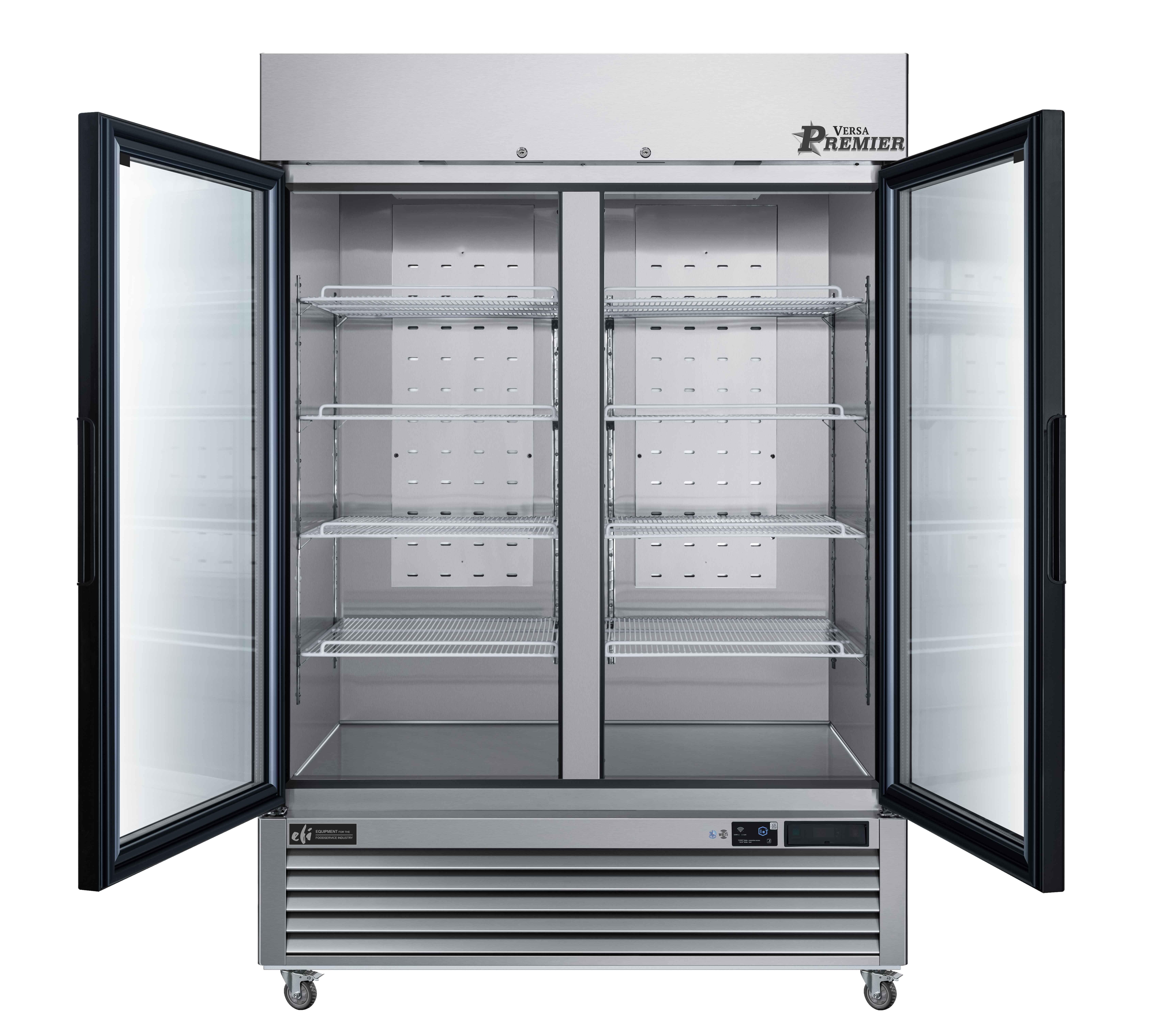 - Anti-fog dual-pane tempered glass doors with magnetic gaskets