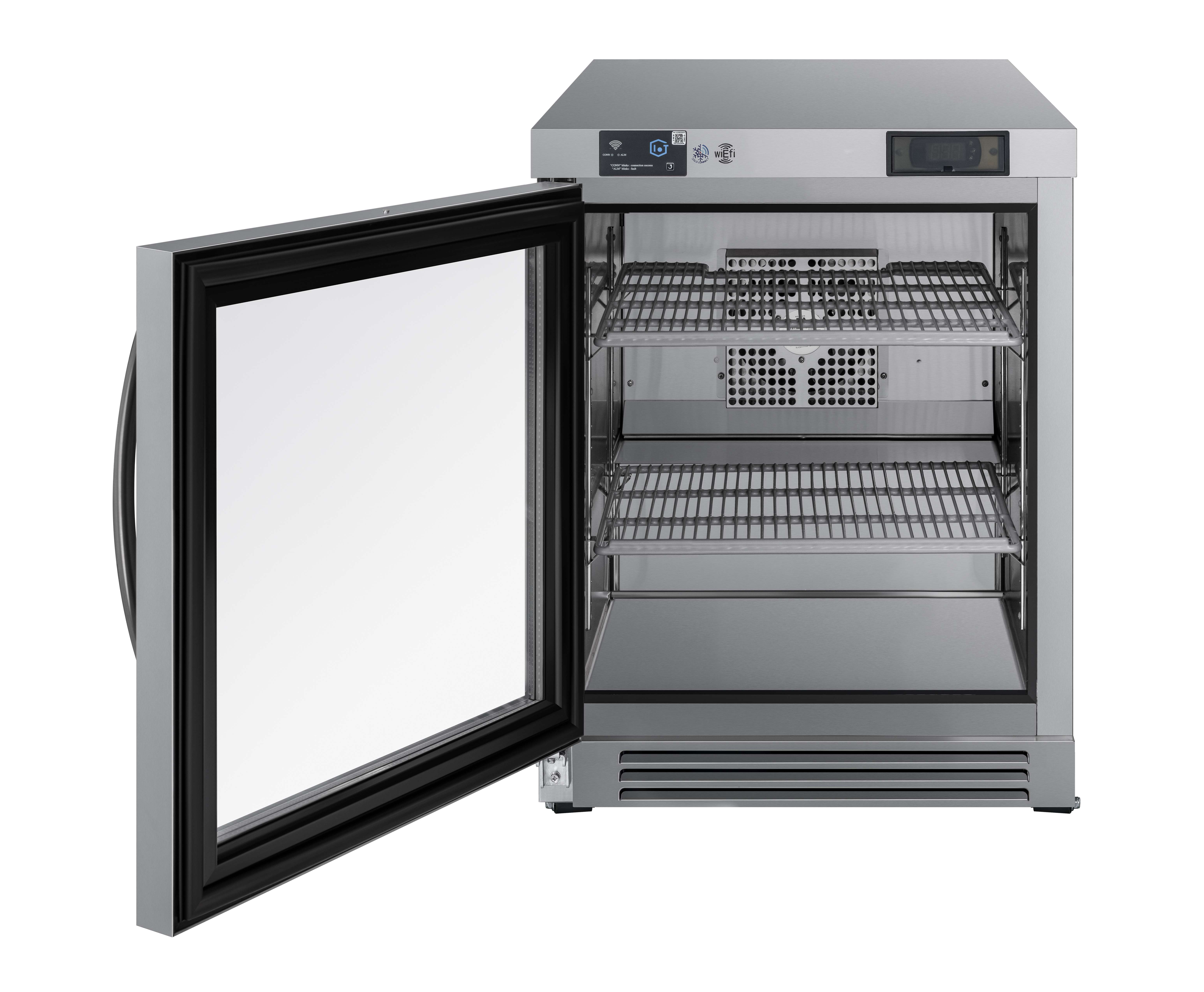 - Anti-fog dual-pane tempered glass doors with magnetic gaskets