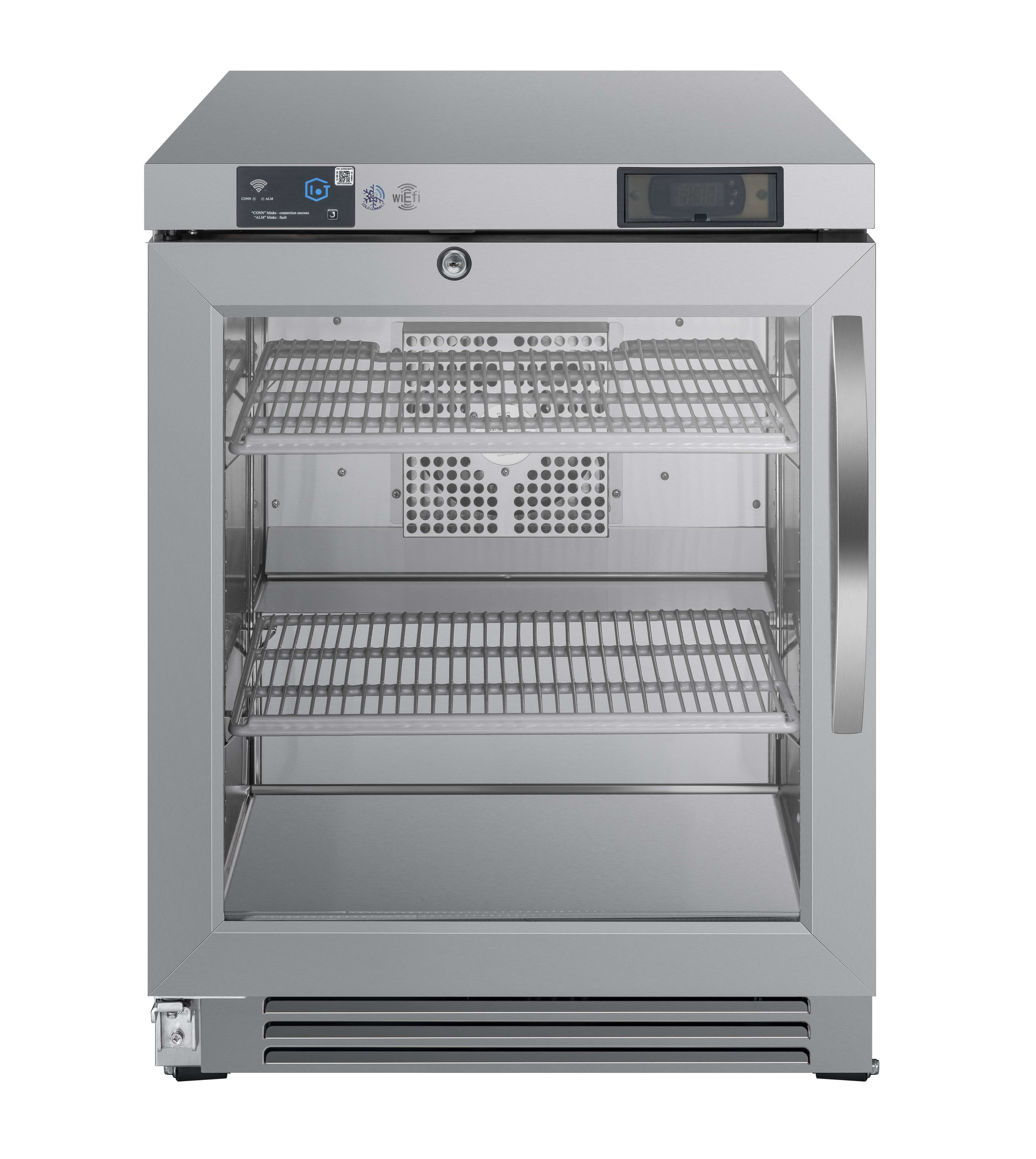 - Anti-fog dual-pane tempered glass doors with magnetic gaskets
